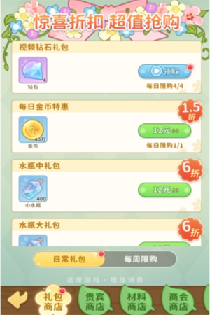 织梦森林游戏里钻石是一种珍贵货币,可以够买大部分商品,还可以购买培养材料,加速订单完成,加快鲜花培育速度等等,要规划使用,以下是钻石的获取方法及作用分享。