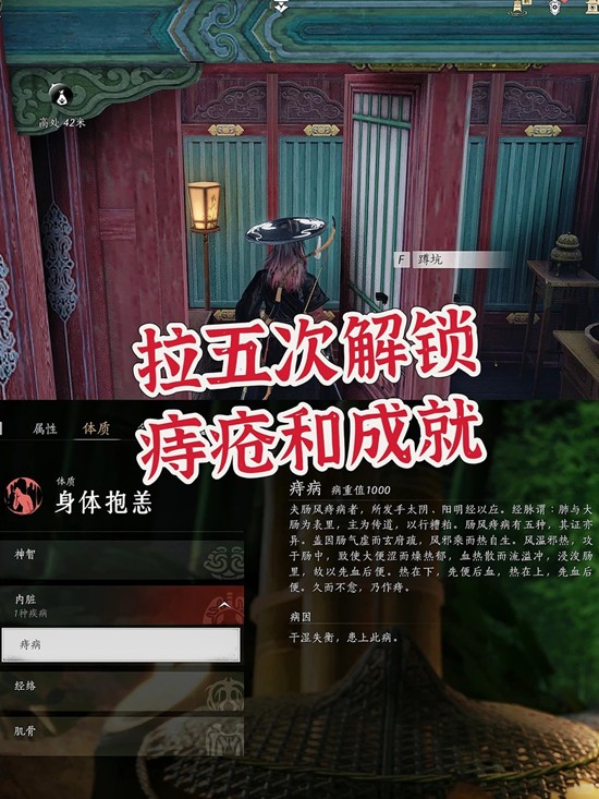 拉五次解锁痔疮和成就抱恙