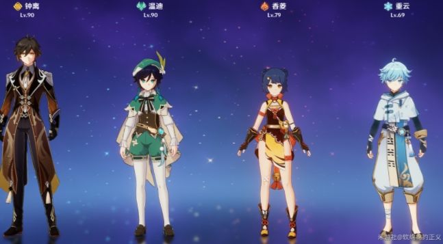 钟离提供护盾、温迪聚怪、香菱、重云大招轮流爆发,互相打融化,输出极高!