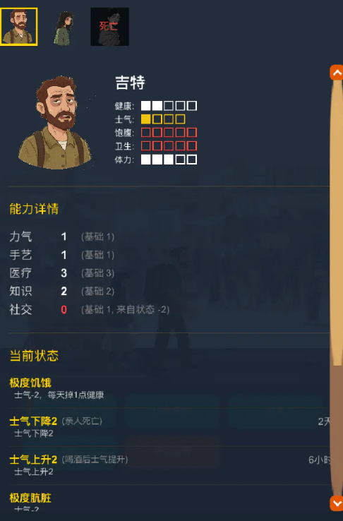 玩法层面强调轻量化策略深度:无需复杂操作,玩家主要通过资源调配、路线规划、同伴关系管理及多维数值博弈来推进进程。例如需综合评估食物、药品、弹药等物资的单位性价比,权衡行进路径的风险收益比,并基于NPC性格模型预判交互结果,在有限信息下做出影响全局的关键抉择,切实体现“小选择引发大后果”的硬核生存逻辑。