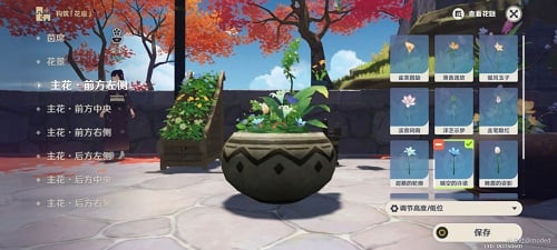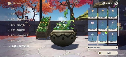 10、总而言之,4、6、9选第三行第二个花材,5、8选第三行第一个花材,7选第三行第三个花材,都选完后点保存即可完成任务。