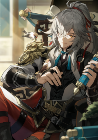 一只雀儿跳下他的肩膀,他顺势抬手接住。