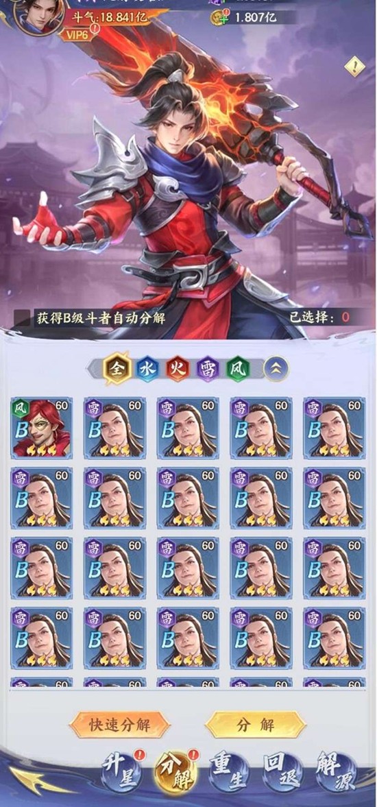 玩家在斗破苍穹手游的冒险过程中,会获得大量重复或低品质的斗者。通过星辰台的分解功能,可以将这些不需要的斗者分解,从而获得金币、经验卡和碎片等培养资源。这些回收的资源可以再次投入到主力斗者的培养中,实现资源的有效配置。