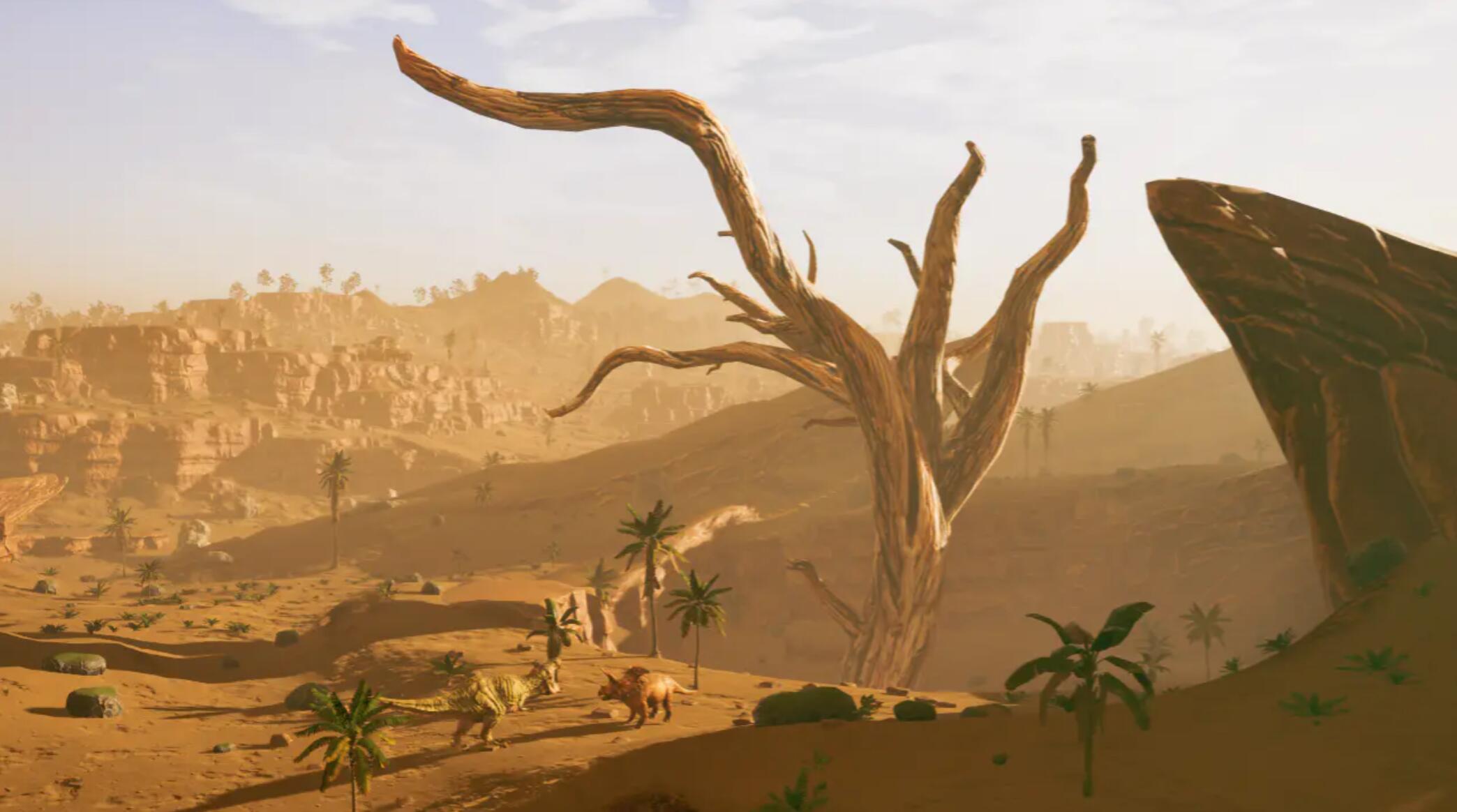 《龙岛异兽起源》是一款以侏罗纪时期为世界观背景的拟真向开放世界生存冒险游戏。玩家将摒弃传统人类视角,首次以恐龙本体身份进入原始大陆,在第一人称沉浸式环境中直面严酷的自然法则——从初生幼体的脆弱挣扎,到逐步掌握体温调节、饥饿管理、领地争夺与种群协作等核心生存机制,完成由弱至强的生态位跃迁。