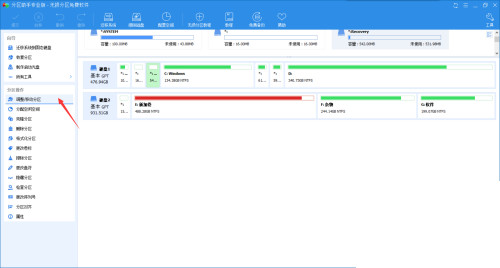 2、点击左侧菜单栏中的"调整/移动分区"选项。