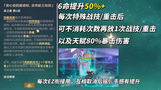 6命提升50%+,每次特殊战技/重击都可额外再放1次,并且天赋额外提升80%暴击伤害。