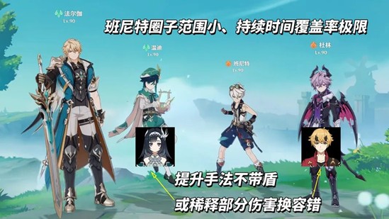 法尔伽的本质上都在等待未来队友,现阶段配队只能定下来“法尔伽+杜林”。班尼特,对大多数玩家来说覆盖率不够,且法尔伽普攻会前进容易走出圈子。可通过缩轴打出关键爆发以及调整施放位置改善体验,不过仍然期待有更契合的辅助角色。