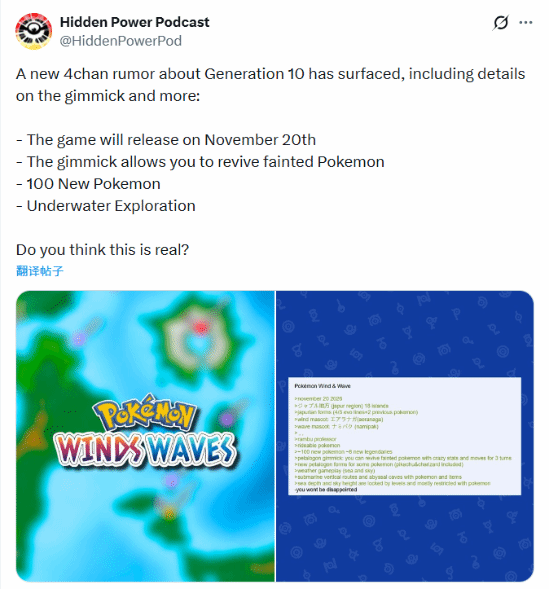 最新爆料消息!《宝可梦风浪》超100只新宝可梦并在11月发售!