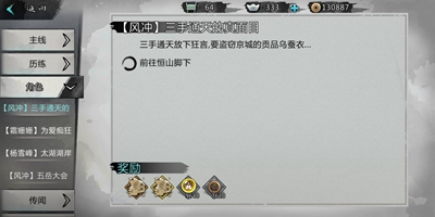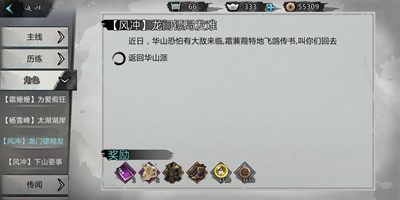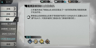 4、我的侠客风冲情孝难全孝当先,奖励:武学《太华君子剑》加入心愿池