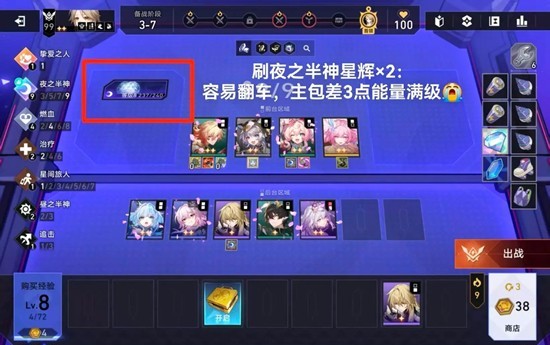 主包前期金币全部用来找人没金币升人口导致2-7才达成7夜神,最后3-7差3点能量满级夜神