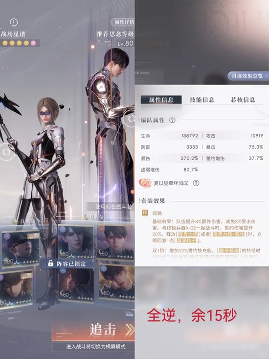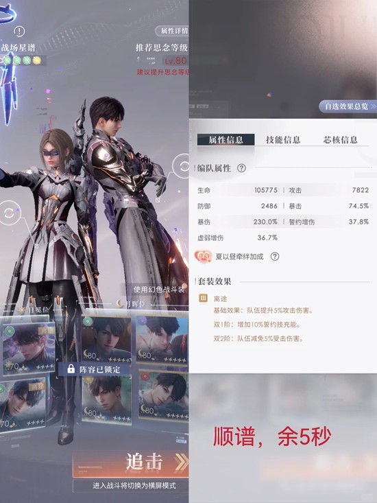 【C组】这组是顺谱,一开始我全堆的虚弱,但是在非虚弱期伤害太低,所以后来调整了一次面板,把芯核都换成双暴,余5秒打过了。C组是破盾打法