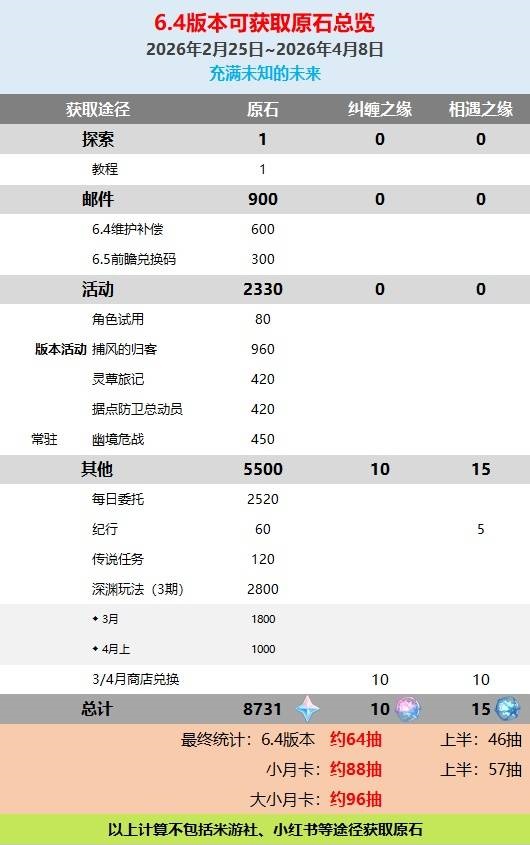 零氪玩家能获得8731原石、10个纠缠之缘、15个相遇之缘
