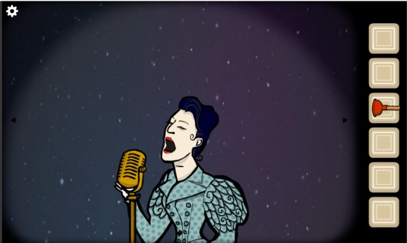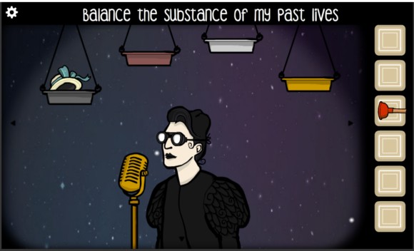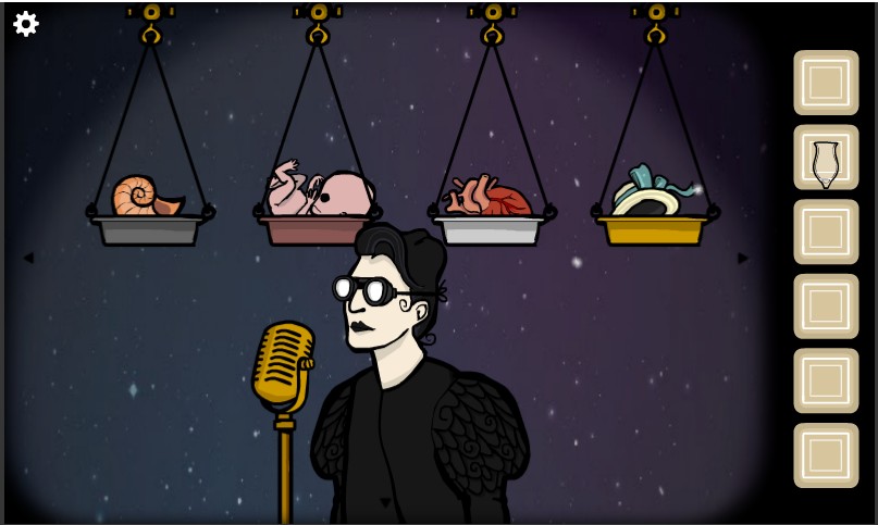 3、唱歌的女人突然变了一身衣服,并要求我们找到道具放在头上的天平上,并且要让所有的天平平衡。