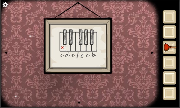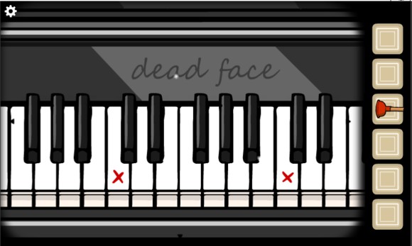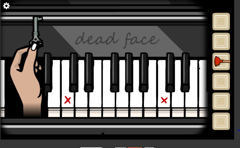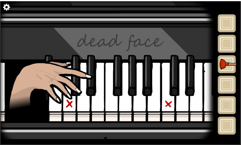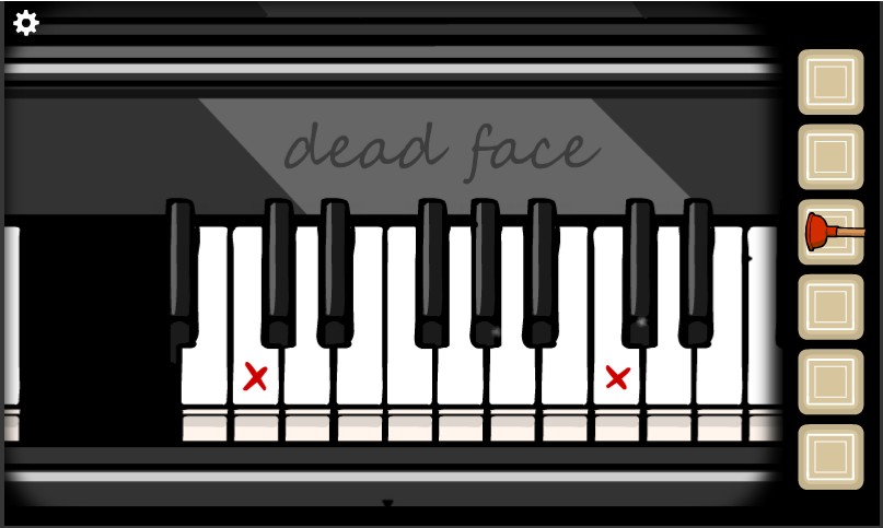 5、去找钢琴,在墙上看到提示,再看钢琴上有dead face与红色叉记号的提示