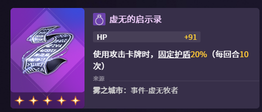 另一张关键卡“拔出匕首”虽为0费基础卡,但作用不可替代——它既能补充暗影匕首库存,又能提升特蕾莎下一次普通攻击的伤害倍率,使平A与技能衔接更紧密。在装备方面,“虚无的启示录”为最优解,其效果为:每次使用攻击类卡牌时,自动获得20%攻击力值的固定护盾。该属性完美契合特蕾莎高频出手的战斗风格,在维持输出的同时显著增强站场容错率。该装备需通过雾之都市区域的【虚无牧者】事件获取。