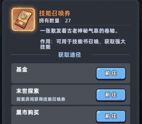 想要快速解锁技能书,主要有两个途径。核心途径是使用技能召唤券进行抽取。这里有一个关键点,开通技能书基金后,每次角色进阶都能获得固定的技能书奖励,这相当于一种稳定的资源获取方式。此外,不要忽略末日世界的探索,在世界地图中,凡是带有开启门图标的房间,进入后都有机会获得召唤券。黑市虽然可以直接购买召唤券,但每张需要150钻石,成本较高,建议玩家在后期钻石储备充裕时再考虑。另一个途径是通过场景探索直接获取。室内探索虽然主要产出召唤券,但在一些高难度节点中,也有机会直接获得完整的技能书,其中甚至包括一些限定款式。如果运气够好,这能让你在培养路上少走很多弯路。