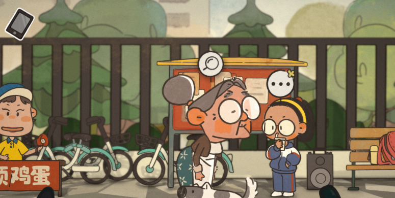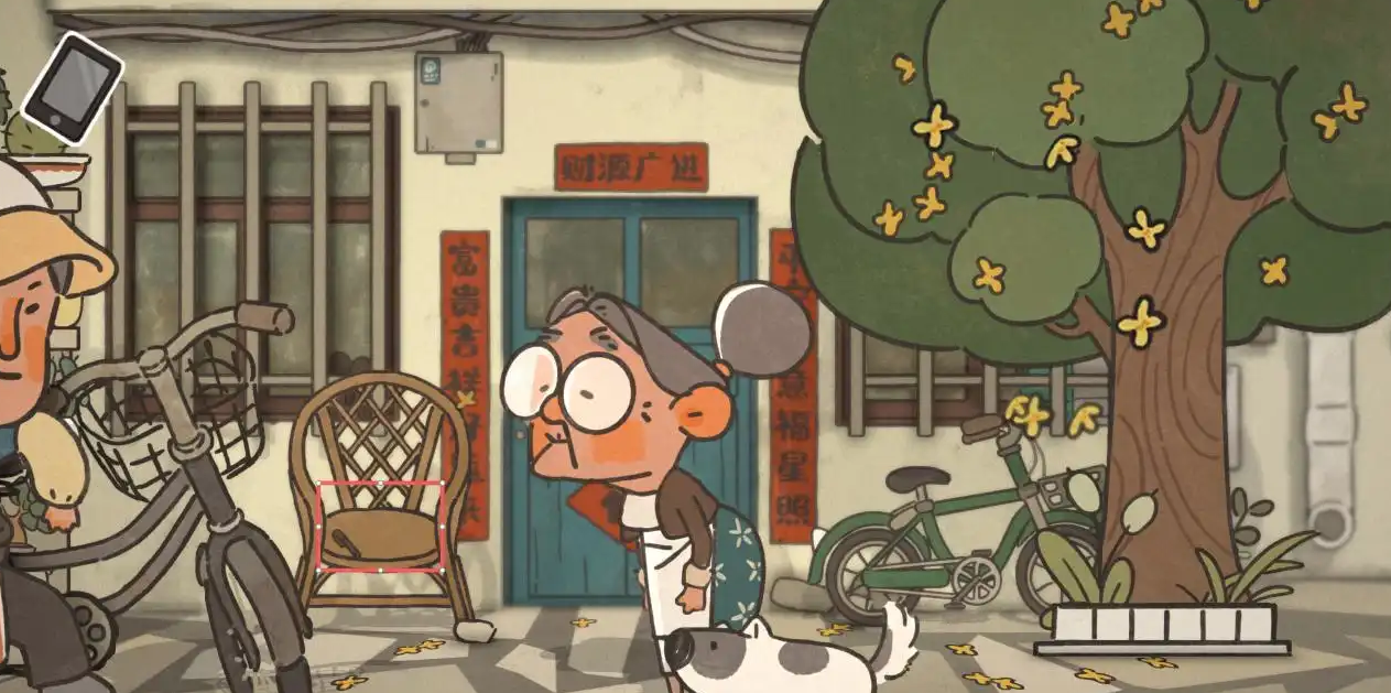 ② 在老街最右侧的藤椅上获取星星的琴谱