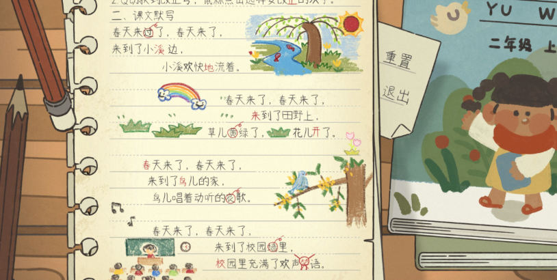 ① 在广场与“妙妙”对话,接取支线任务“语文作业”