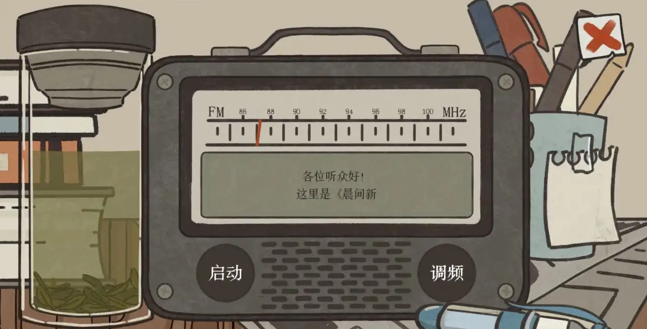 ② 点击门卫右侧的收音机,先点击“启动”,到指定位置点击“调频”可停止,听完后再次点击“调频”可继续改变位置