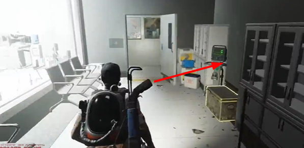 4、玩家进入大门后往右侧走,来到下图房间中就可以看到箱子,开启箱子就可以拿到【MP5蓝虎】武器蓝图。