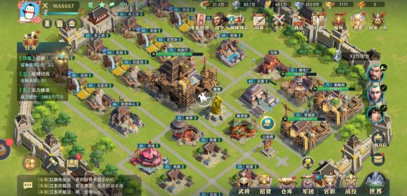 5、等级升级要求,第三列产资源建筑只升一个就够,策略府阵型只升方圆跟长蛇两个阵;