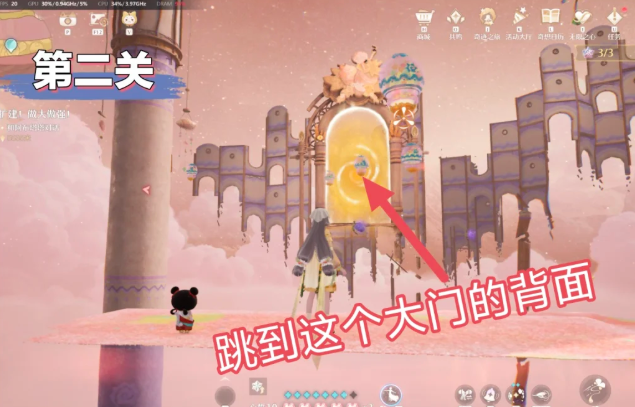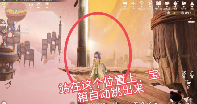 2、跳到大门的背面,站在此处宝箱就会自动跳出来