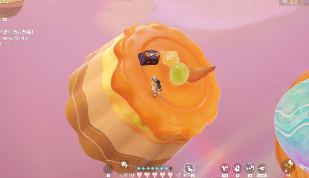3、在终点门口的背面可以看到一个布丁,跳到布丁上面宝箱就会自动显示出来