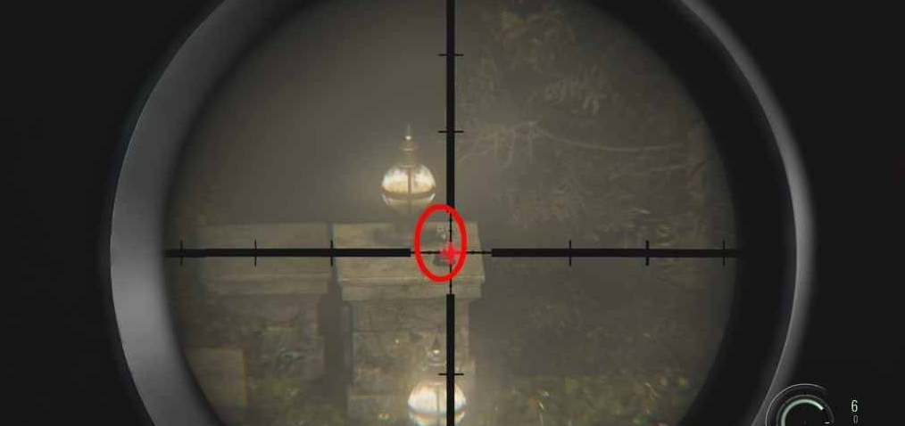 这个浣熊先生就在其中一个庭院灯的灯座上,需要用带瞄准镜的狙击枪从远处射击