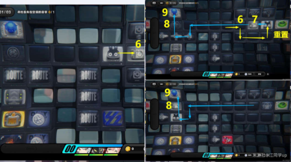 5、接着从下面过去,将7区域的箱子推到9区域,如果推错了,右边绿色按钮为重置按钮;