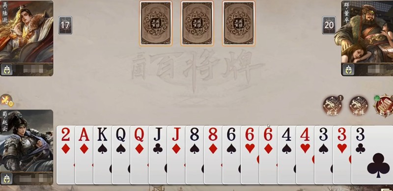 赵云的核心机制在于其独特的兵力调度能力。他的主动技能允许玩家弃置手牌中的单张或对子,并用一张万能符进行替换。这一设计巧妙地打破了三国百将牌对局中因随机发牌带来的不确定性,让玩家能够主动构建顺子、连对乃至炸弹等高价值牌型组合。这使得即使在开局手牌不顺或中期陷入僵局时,玩家也能通过赵云的技能重新掌握主动权,有效缓解了因牌运不佳产生的心理压力。