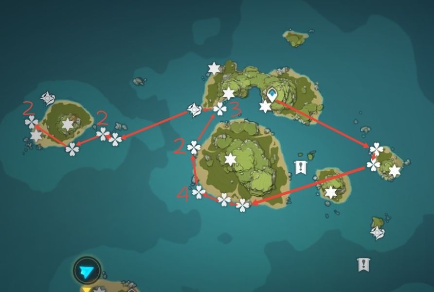 一共有八个,上面的岛和下面都有,不太密集,不缺的可以不来这里。