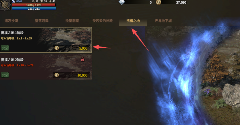 抵达5级后,切勿立即投入野外刷怪。应第一时间前往杂货铺储备物资,重点采购体力恢复道具。体力是持续作战的生命线,在高频次挑战中消耗极快;一旦中途枯竭被迫退出地图,不仅中断经验积累节奏,往返跑图更会显著拉低单位时间产出效率。建议至少购入10个体力恢复剂。物资到位后,即可启动高效升级流程:点击右上角菜单,进入“地下城”模块,直接解锁专属练级场景——祝福之地。该区域怪物提供的经验值远超普通野外地图,是前期等级突破的关键节点。