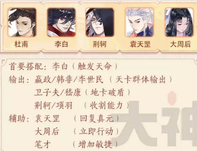 杜甫上场的情况建议还是要李白的,李白和杜甫的天命能够提升攻击力以及每回合能够提供一只黄鹂,让李白的输出更加爆炸。