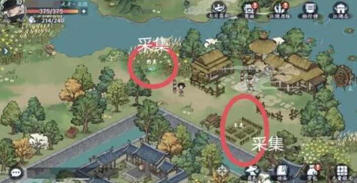 4、右下角是两个采集点,并且在河边时藏宝图。