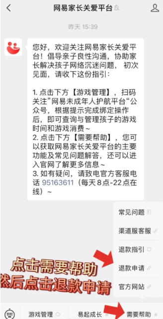 3. 通过客服服务对话框发送"未成年充值退款"申请