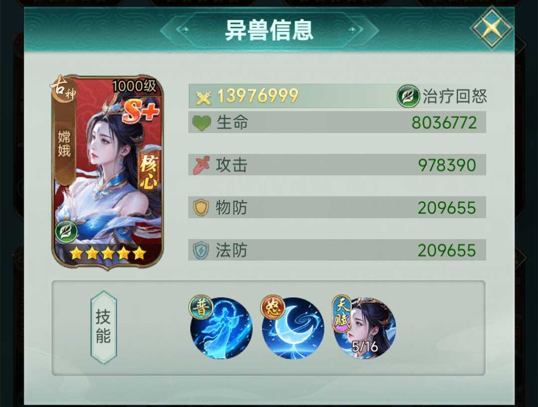 综上所述,异兽灵境中的嫦娥不仅是灵兽系统的重要构成,更是构筑稳健、持久、高容错率阵容的关键支点。其治疗回怒双效合一的机制,配合S+品质带来的属性加成,在当前版本中仍保持不可替代的战略地位。