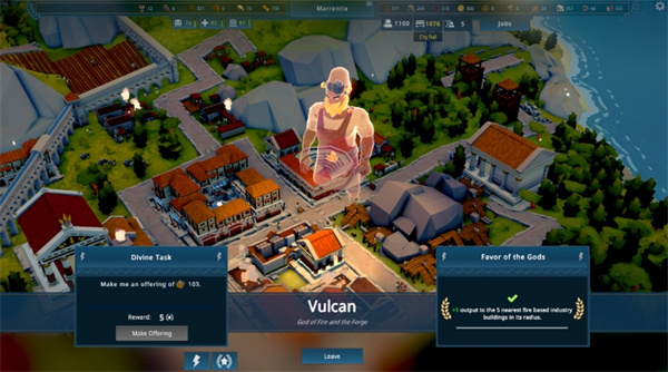你可以向小神庙中的任何神明献上恩惠,这会为周围相关建筑提供各种加成:
