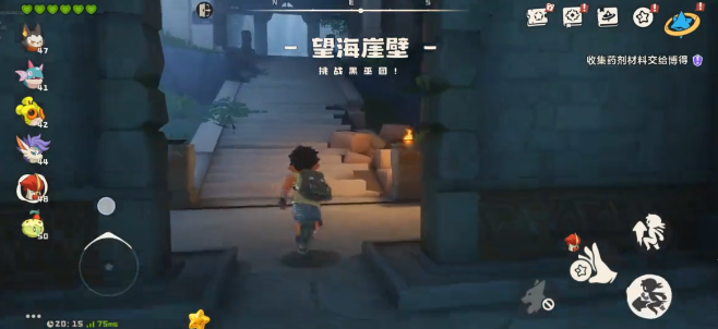 进入游戏后,打开大地图定位“望海崖壁”,传送进入副本。开局即为直线推进路线,无需探索岔路。前行约15秒后,会遭遇一名黑衣NPC——这是副本首个强制交互点。与其对话后触发单场对战(无难度门槛,常规宠物即可通过),胜利后前方铁门自动开启。此时切勿立即穿门而过:抬头观察上方岩壁,可发现一枚悬浮的发光星星图标。该道具需手动点击拾取,但因视角限制,常被前景树枝遮挡。建议微调镜头仰角,避开枝干遮挡区域后再点击,即可稳定获取。