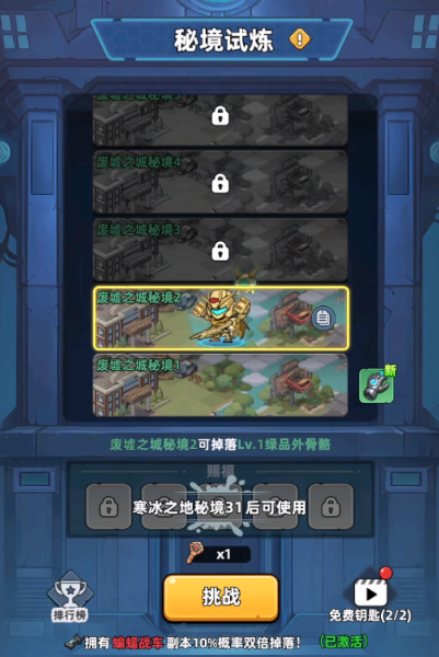 副本系统是资源积累的重要路径。常规副本通关后可稳定获得猫粮与钻石;而“罐头副本”则专精于批量产出罐头及士兵识别牌,是前期资源补给的核心渠道。中后期角色强度提升后,可逐步挑战“勇闯试炼塔”——该塔共设多层,每通关一层即发放固定数量的识别牌与罐头;若成功抵达指定层数,还将触发额外奖励机制。此外,“秘境试炼”同样采用扫荡式推进逻辑,但参与前提为消耗专属钥匙,因此需合理规划钥匙使用节奏。同属副本类玩法的“勇者实验塔”,亦具备稳定的阶段性资源回报,值得纳入日常优先执行序列。
