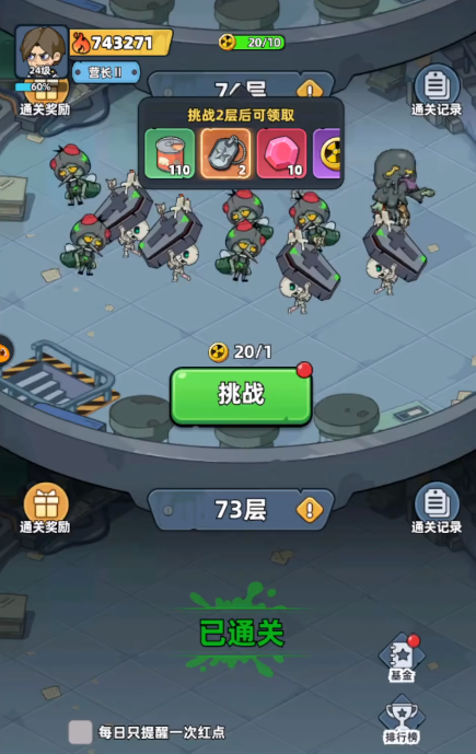 游戏内任务体系结构清晰,其中“每日任务”为最基础且不可跳过的日常循环模块。系统于每日0点准时重置任务池,确保玩家可持续获取稳定收益。任务类型主要分为两类:一是击杀指定数量的普通丧尸,二是通关指定难度的关卡挑战。完成即可获得士兵识别牌与基础货币;当达成额外条件(如单日累计击杀数达标)时,还可解锁罐头密钥。该道具可配合钻石钞票,在商店中兑换稀缺功能型物品。待角色战力成长至一定阶段后,建议优先开启“首领试炼”——该玩法每日开放一次挑战机会,击败不同层级的首领将对应掉落差异化装备,每场战斗前的界面均明确标注本次可获取的具体奖励内容。