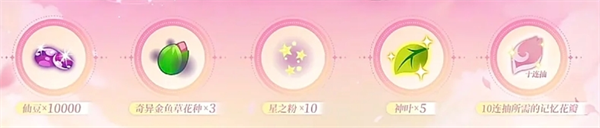 礼包内容:5神叶+周年庆免费十连抽+奇异金鱼草种子+仙豆