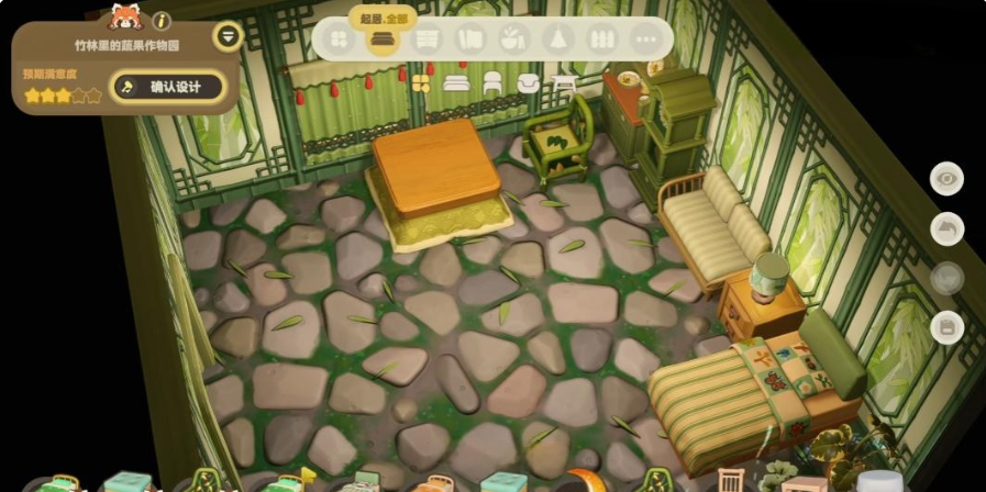 家具获取渠道多样:基础款家具可在木匠铺定期刷新的货架中选购,每日更新不同款式与材质;稀有设计款可通过旅行货车随机出现的摊位淘选,具有收藏与搭配价值;建议在动工前明确主视觉方向——如清新田园风、温润原木风或简约北欧风,并围绕选定风格筛选色调、材质与造型相近的家具组合,确保整体协调统一;