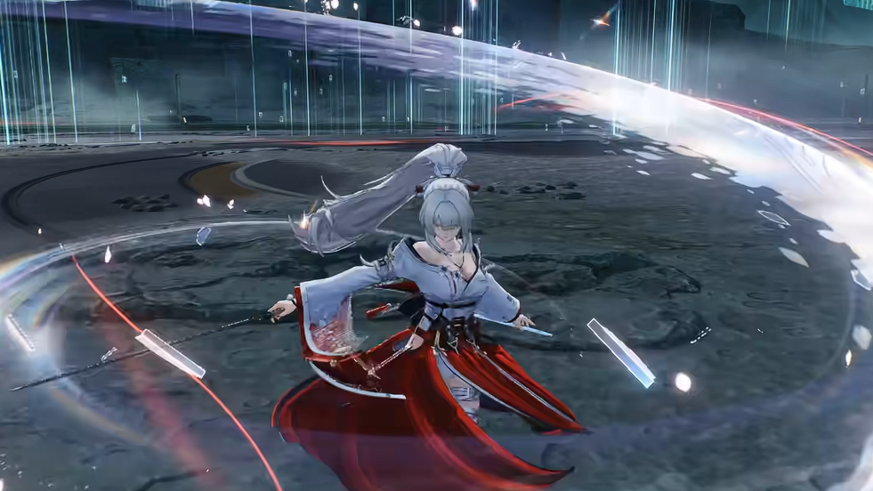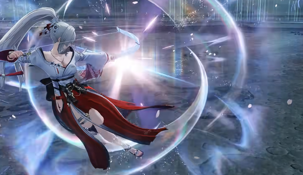 绯雪具备独特的形态切换机制:在近战双刀模式下,可瞬时切换至弓箭形态,完成远程单体精准打击。最后一段射击支持自动索敌与高倍率暴击判定,有效应对高机动或远程单位,补充传统近战角色的输出盲区。