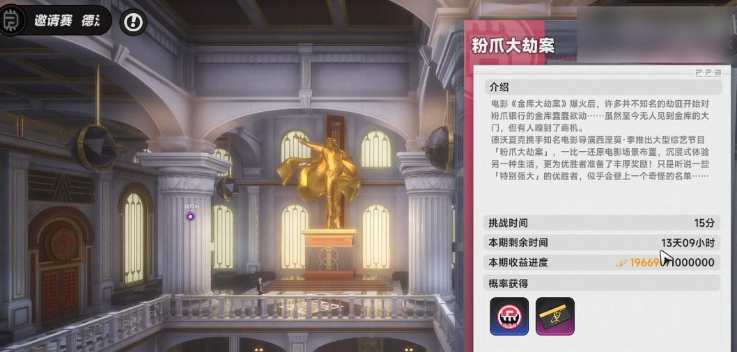 粉爪大劫案隶属于“都市闲趣”系列玩法,每次挑战需消耗固定体力值。积分获取量与单局表现强相关:包括是否触发警报、逃脱用时、掩护配合质量及最终携款数额等。该玩法强调小队协作与策略分工,新手玩家亦可通过反复练习快速掌握节奏。如需了解进阶操作技巧与角色技能搭配建议,可参考主流游戏社区发布的专项攻略内容。