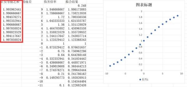 满足这两个条件的函数首先想到的是sigmoid,1/(1-e^-x)。这个和观察到的现象非常类似,将函数乘2就差不多了。数据表中给出了拟合结果,不能说完美符合,但是前几级的增长趋势几乎一致。