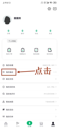 1、首先我们打开六只脚app,然后点击右下角的【我的】功能分区,来到我们的个人信息界面,然后点击那个【我的循迹】。