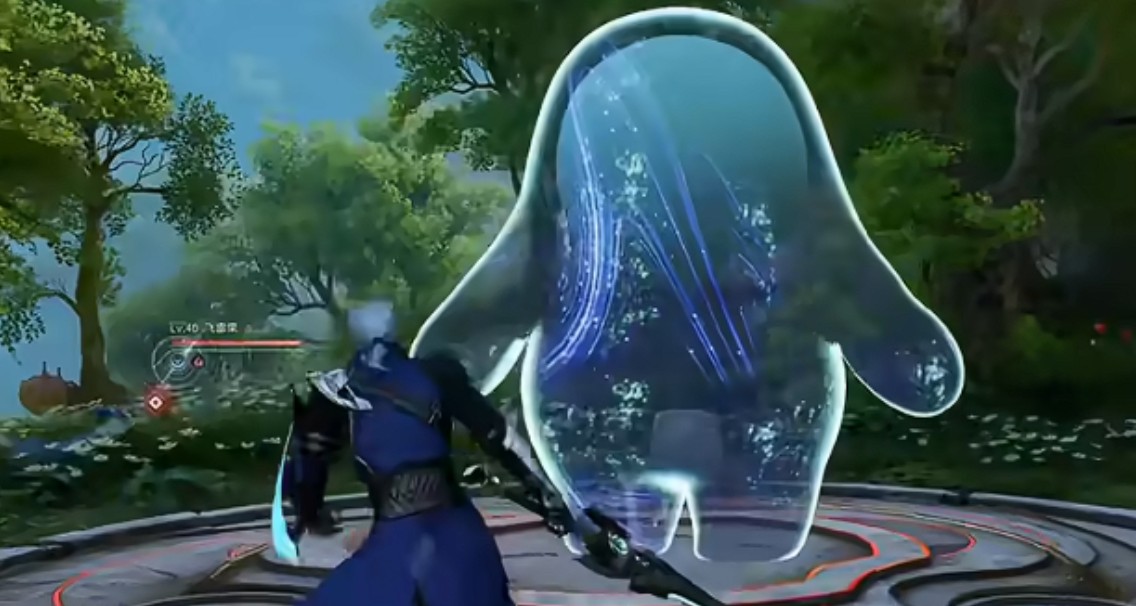 在王者荣耀的世界里,河道巨灵是特殊的。它像一个巨大的果冻状的能量体,半透明的外形使它看起来像是一道飘浮在河道边上的奇异光。