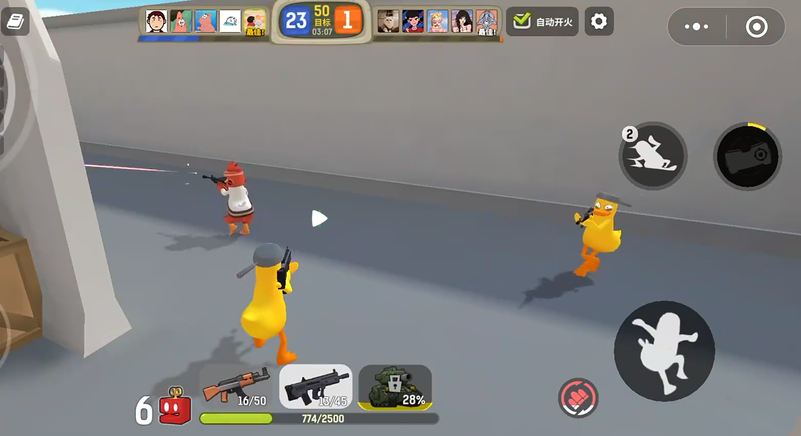 从整体产品定位来看,“嘎嘎射击”以鲜明卡通风格构建差异化体验:角色均为拟人化动物形象,动作夸张、表情生动,具备强视觉记忆点;操作体系高度简化,采用左手虚拟摇杆移动+右手滑动瞄准基础架构,准星锁定目标后自动完成蓄力与射击流程,彻底取消后坐力模拟与压枪机制,大幅降低操作门槛;单局时长稳定控制在3至5分钟区间,适配通勤、午休等短时场景;爆炸特效采用高密度粒子渲染技术,画面冲击力强,情绪释放效率突出。