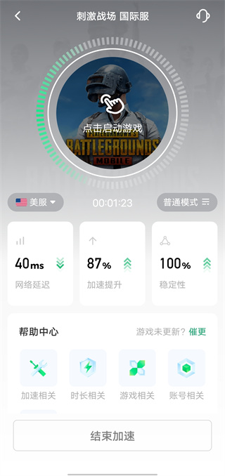 2、点击开启加速,等待加速成功后,会自动启动绝地求生手游国际服。
