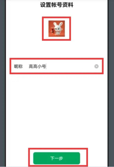 9、接着我们就会进入设置账号资料界面中,我们自行设置一下然后点击下一步。